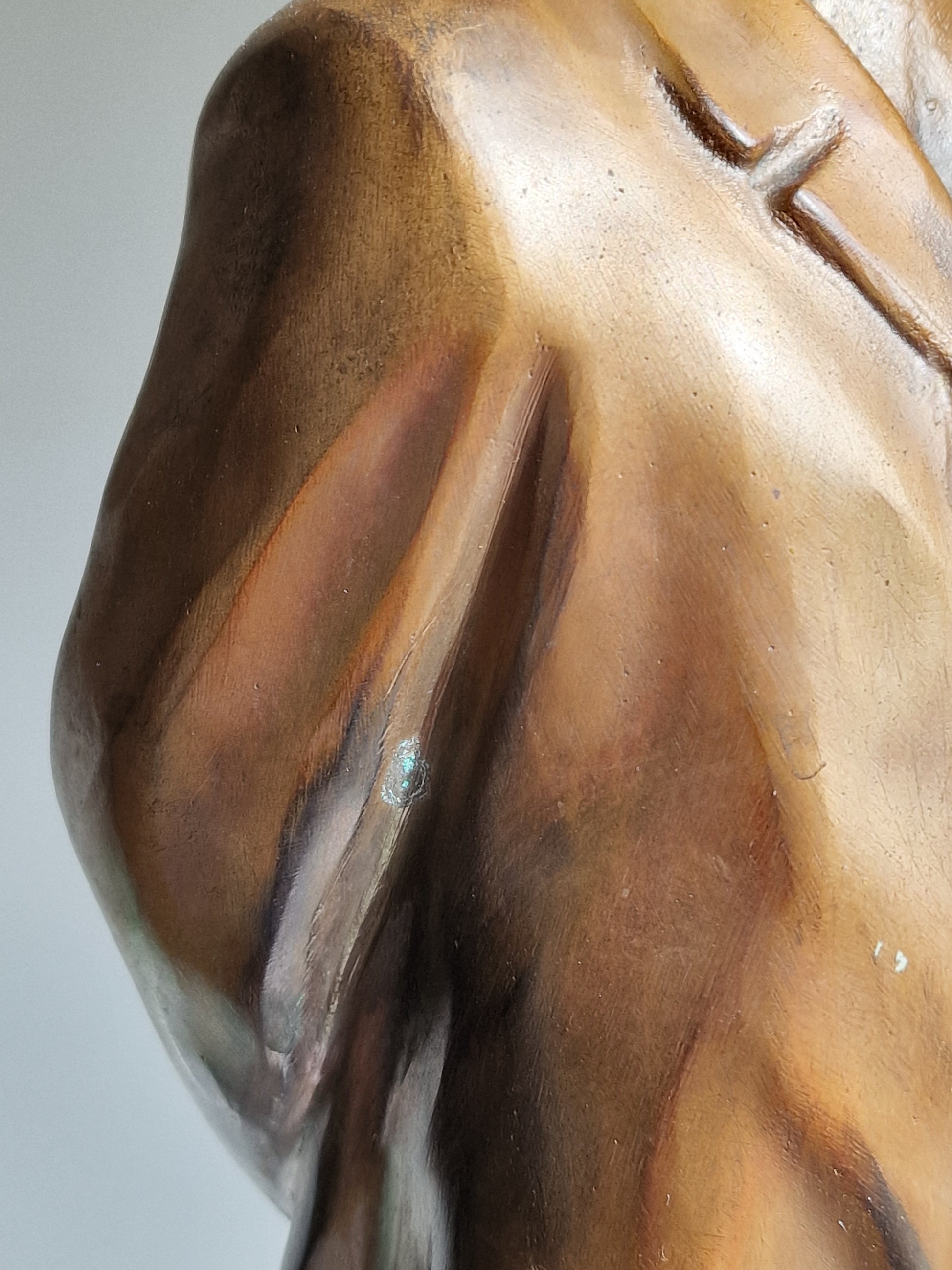 A finely cast bronze figure of Chairman Mao Zedong (1893–1976), founder of the People’s Republic of China and leader of the Chinese Communist Party, shown standing with hands clasped behind his back and wearing a long overcoat — a pose symbolizing authority and contemplation.